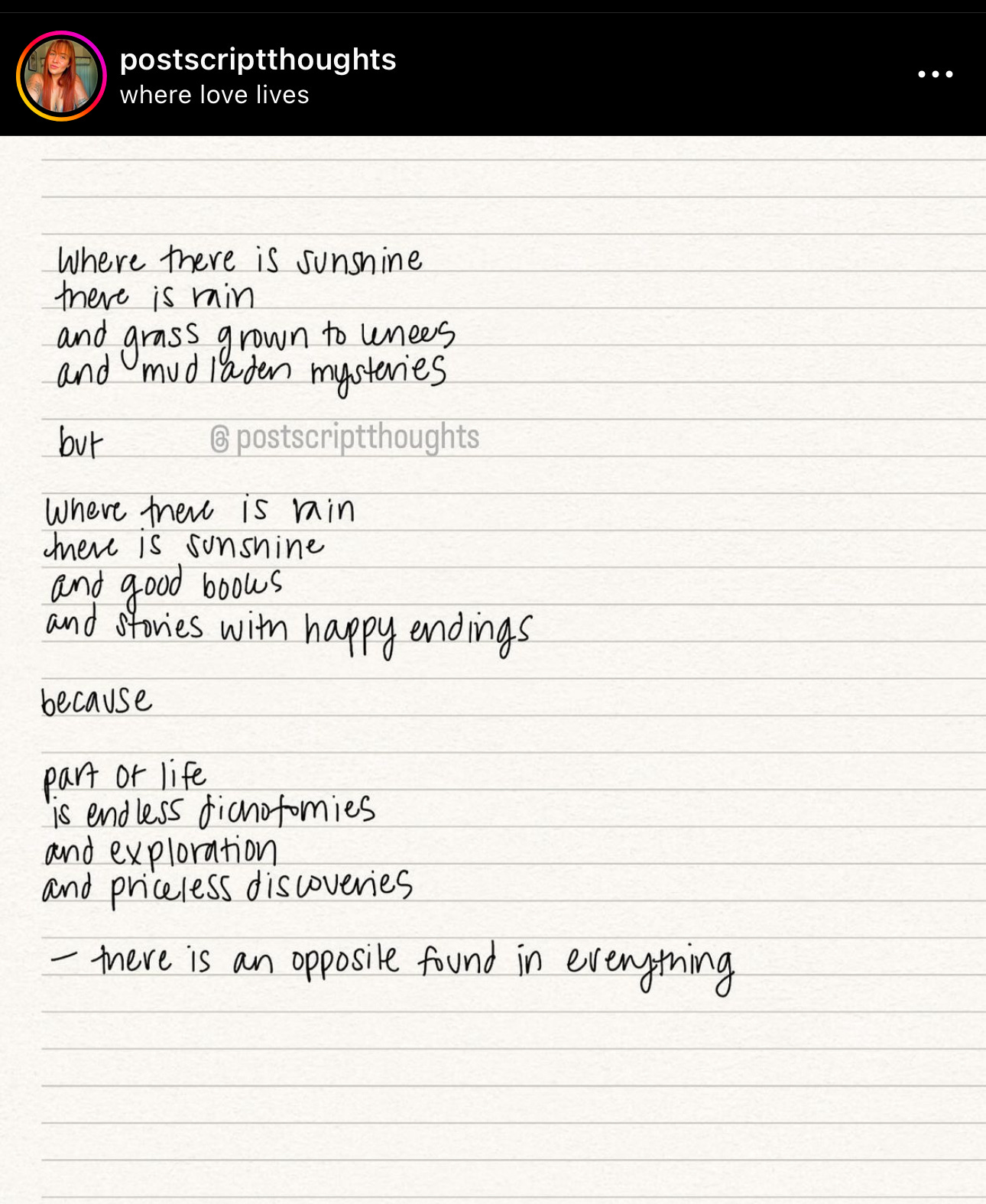 one will never outweigh the other. they constantly seek balance, dancing with each other to the tune of life.